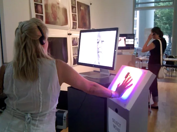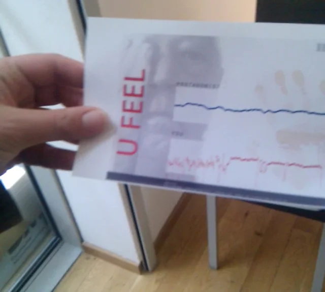 During this approach, the audience could listen to the storyteller while they could watch their own heartbeat pulsating under their hand. Just to see if their emotions were in sync, to see how connected they were to the subject. At the end of each story, the viewer received a printout where they could view their own heartbeat and the heartbeat of he storyteller. And though this was far from a precise measure of emotion, offbeat and visceral ideas like this excite me. I strive to make emotions transparent. I strive to make them visible.
